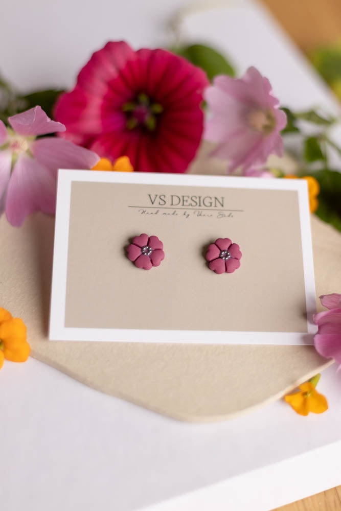 Kukka korvakorut ovat valmistettu käsityönä polymeerimassasta, söpöt pienet korvakorut sekä arkeen, että juhlaan. Kukka korvakoruissa kaunis yksityiskohta kukan sisäosassa.