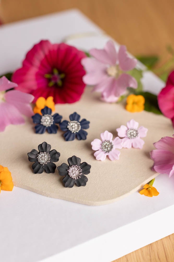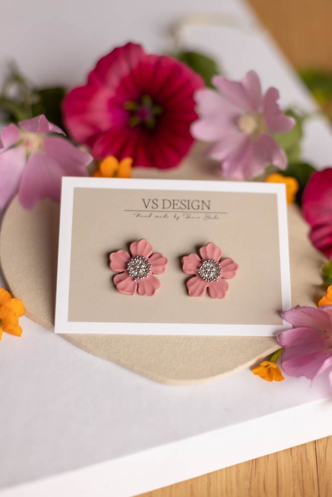 Aino korvakorut ovat valmistettu käsityönä polymeerimassasta, kaunis kukka sopii niin arkeen kuin juhlaan.