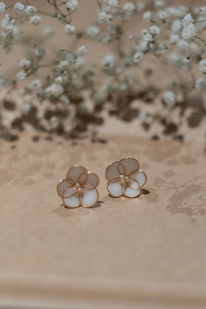 Maj korvakoruissa on herkän kukkamainen design ja kaunis helmikimppu kukan keskellä. Ne ovat kevyet, elegantit ja helppo yhdistää moneen eri asuun. Täydelliset kaikkiin päiviin!