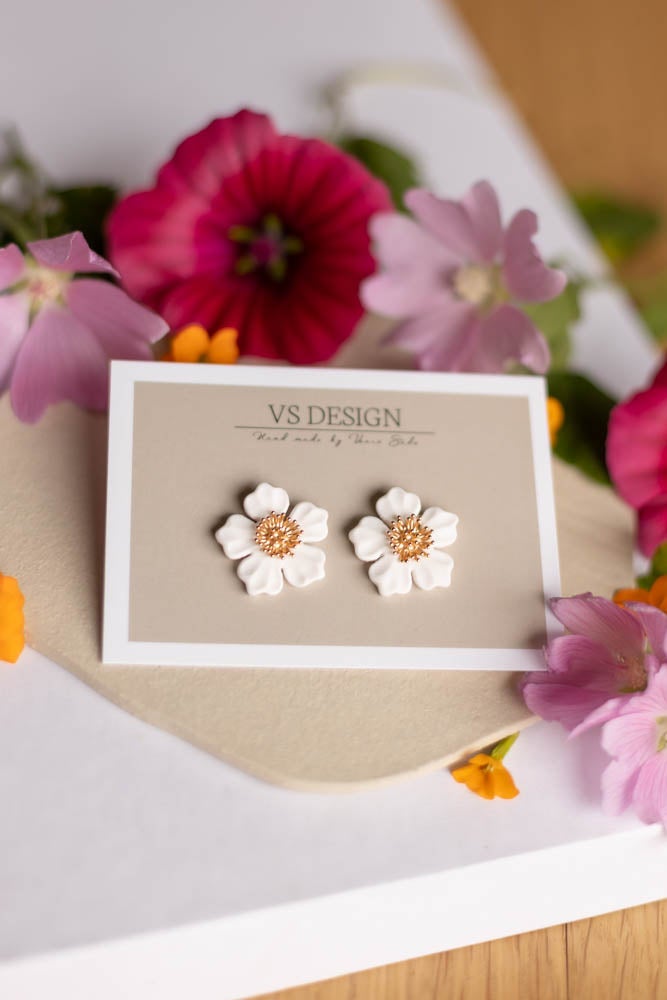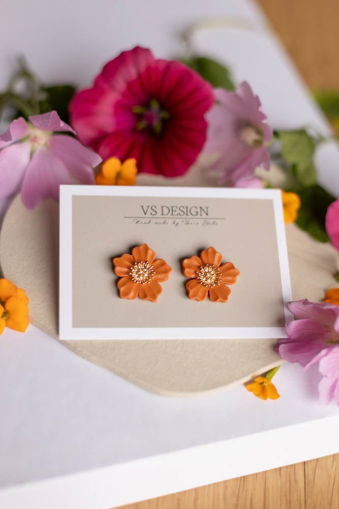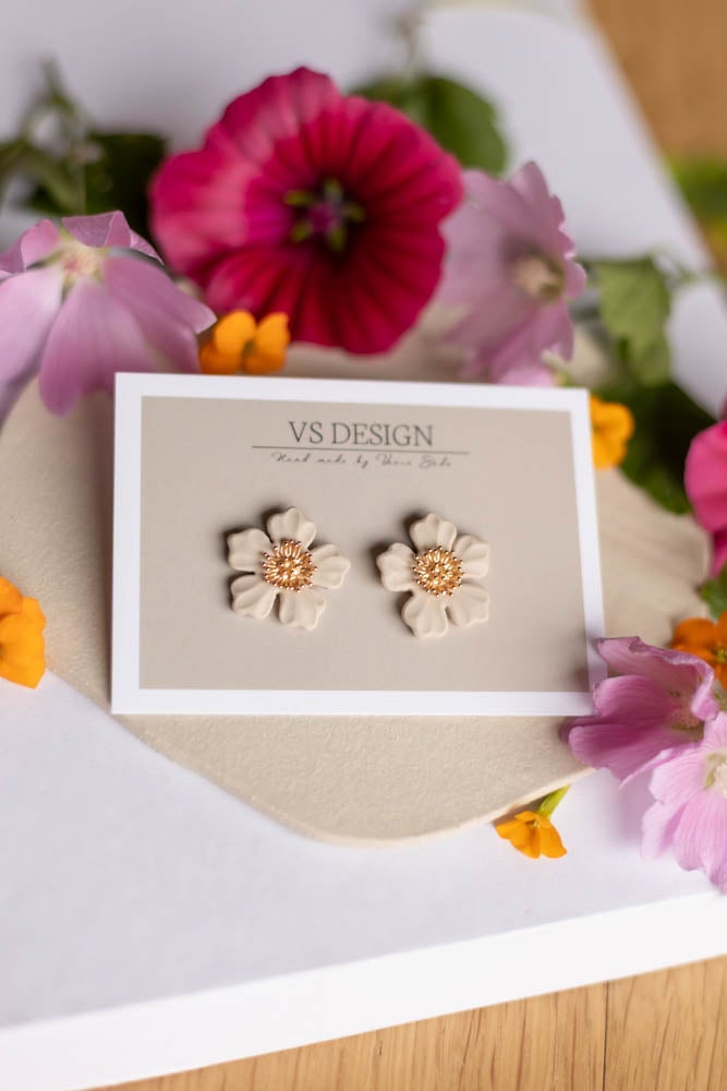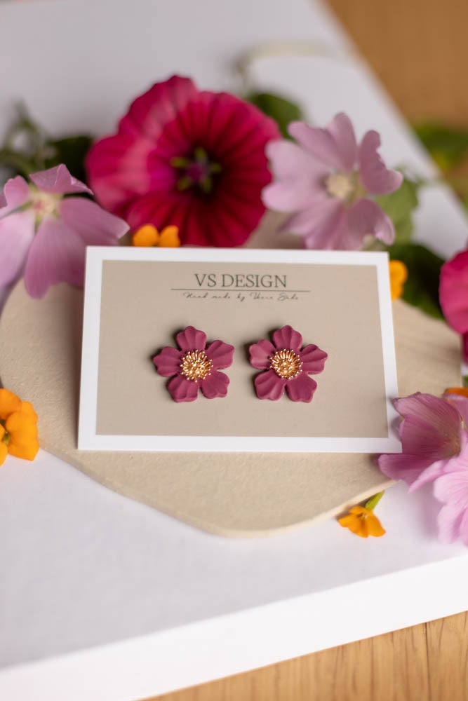 Aino korvakorut ovat valmistettu käsityönä polymeerimassasta, kaunis kukka sopii niin arkeen kuin juhlaan.
