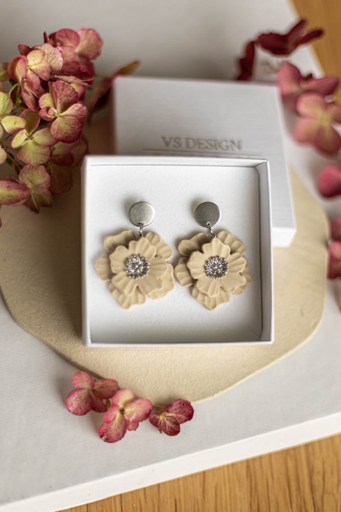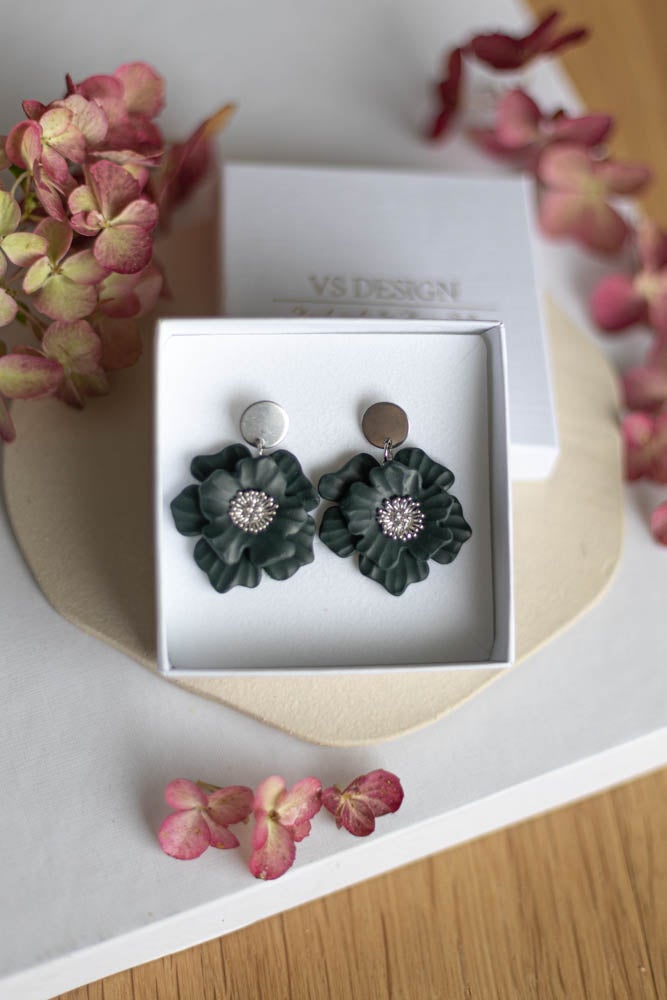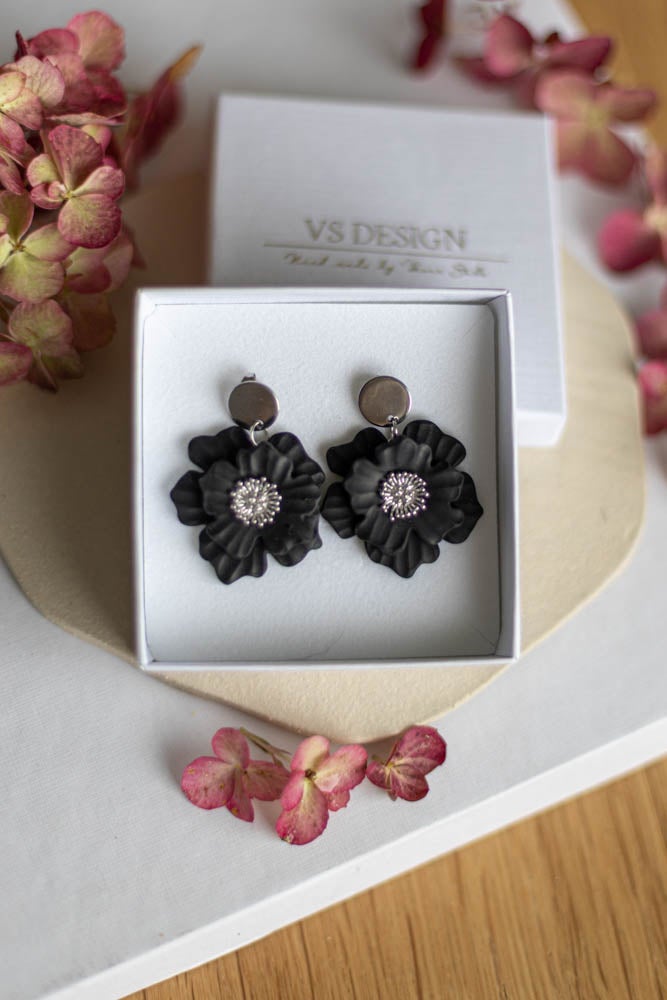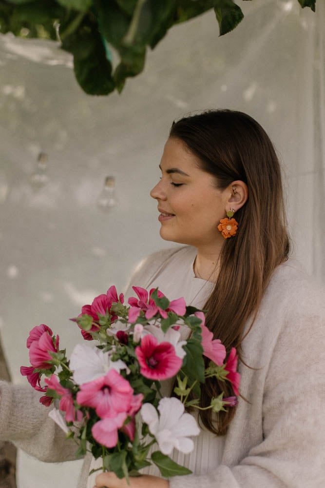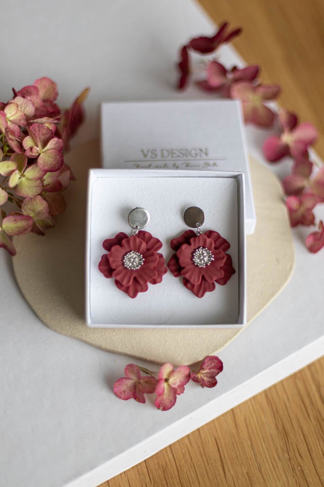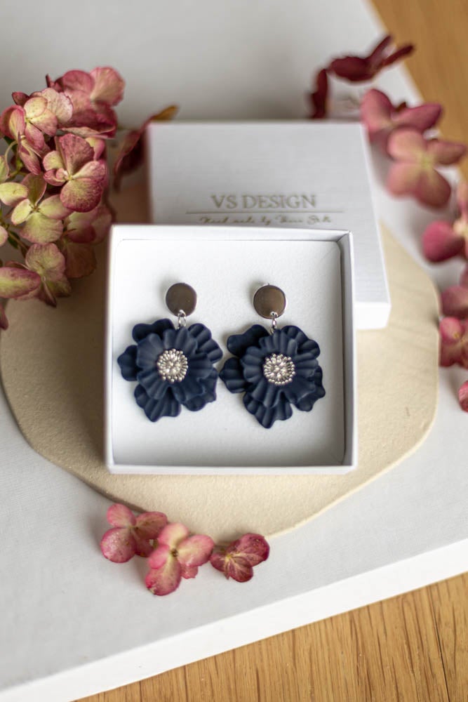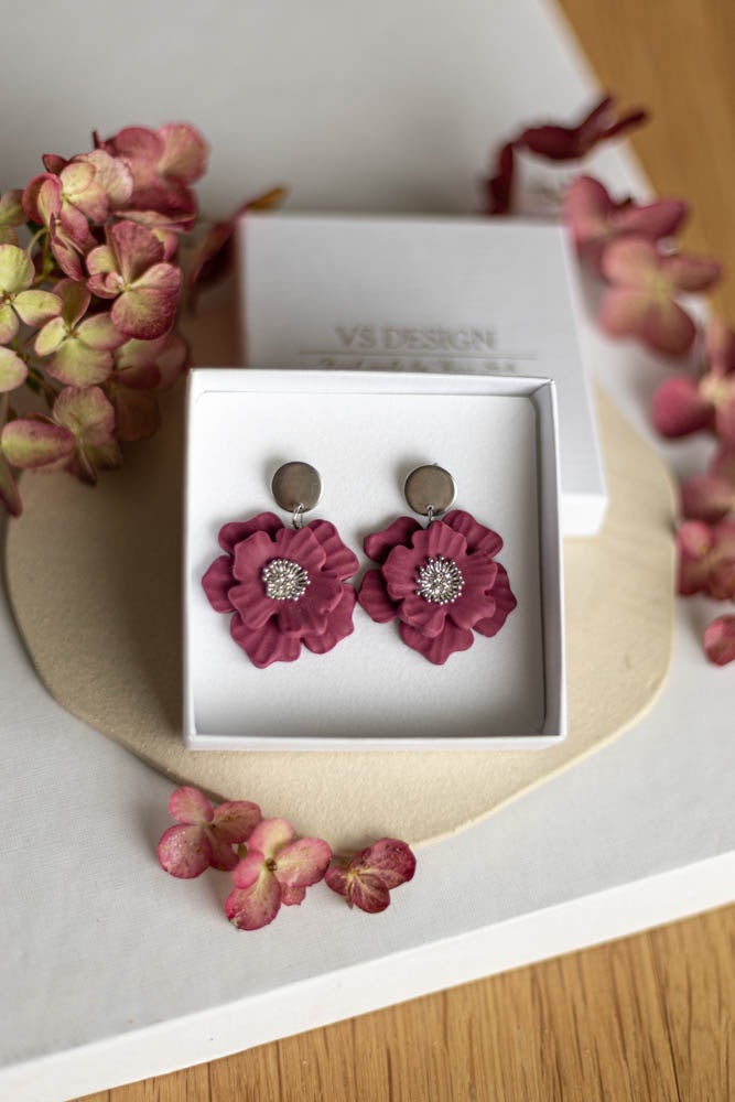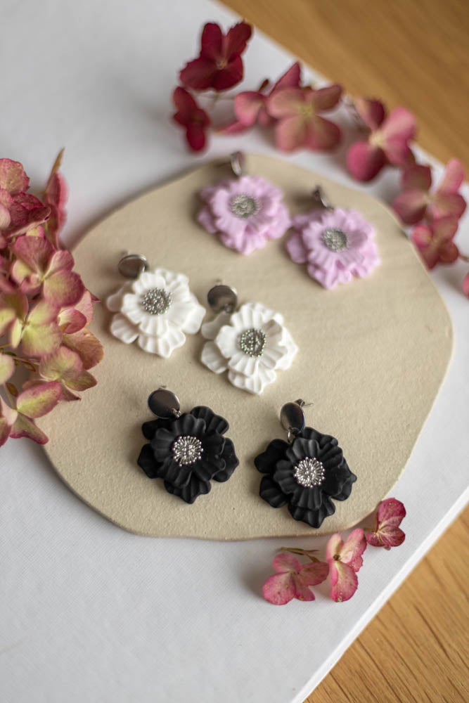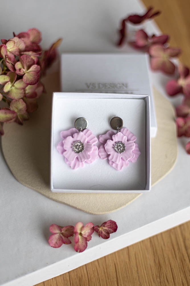 Aava korvakorut ovat valmistettu käsityönä polymeerimassasta, kaunis kukka sopii niin arkeen kuin juhlaan.